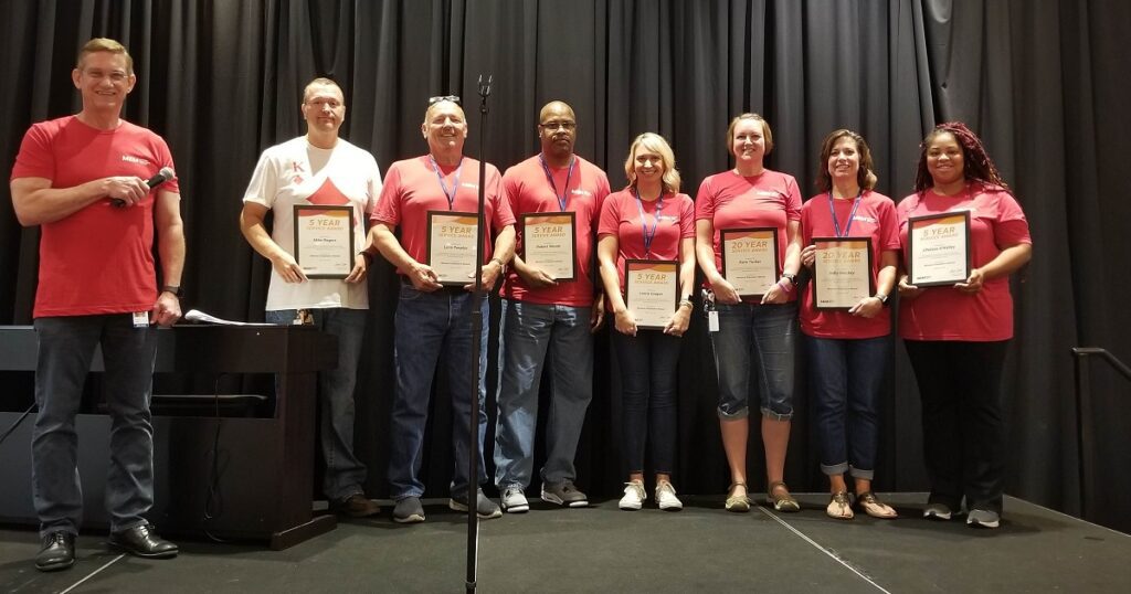 The week began somberly as our employees took a moment of silence to remember policyholders’ employees fatally injured in the past year. Later in the week, employees from all over the state gathered for a celebration. Several employees received service recognition awards, and we heard from special guest speaker John O’Leary. Later, we had some fun with a casino game fundraiser benefiting Kids’ Chance of Missouri.